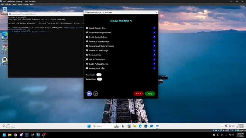 По словам создателя, RemoveWindowsAI улучшает пользовательский опыт, повышает приватность и уменьшает потенциальные угрозы безопасности. По сути, это попытка вернуть контроль над системой тем, кто не хочет, чтобы ОС самостоятельно решала, какие ИИ-модули им нужны.