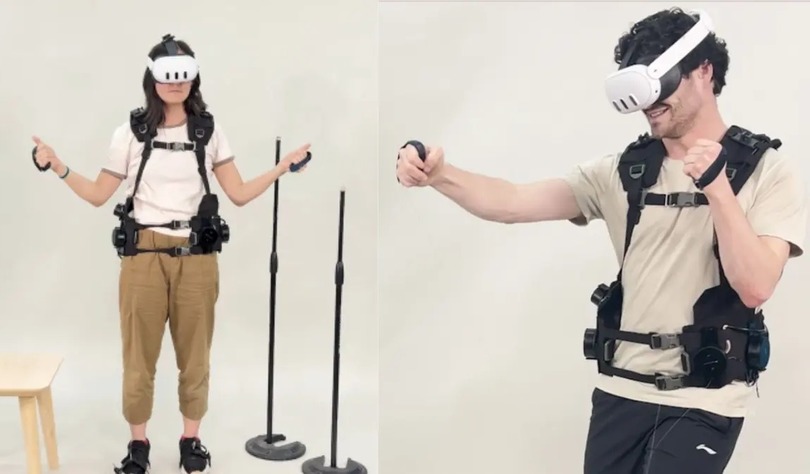 - Физическая симуляция: система из десяти моторизованных катушек (восемь на поясе и две для торса и конечностей) создаёт натяжение нитей, имитирующее вес предметов, сопротивление или ускорение.