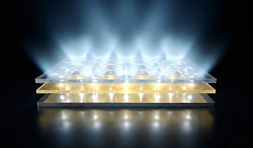 Ключевым элементом разработки стала новая квазиплоская (near-planar) структура вывода света. Она очень тонкая — по толщине сопоставима с обычными массивами микролинз, — но по эффективности почти не уступает громоздким полусферическим линзам той же площади.