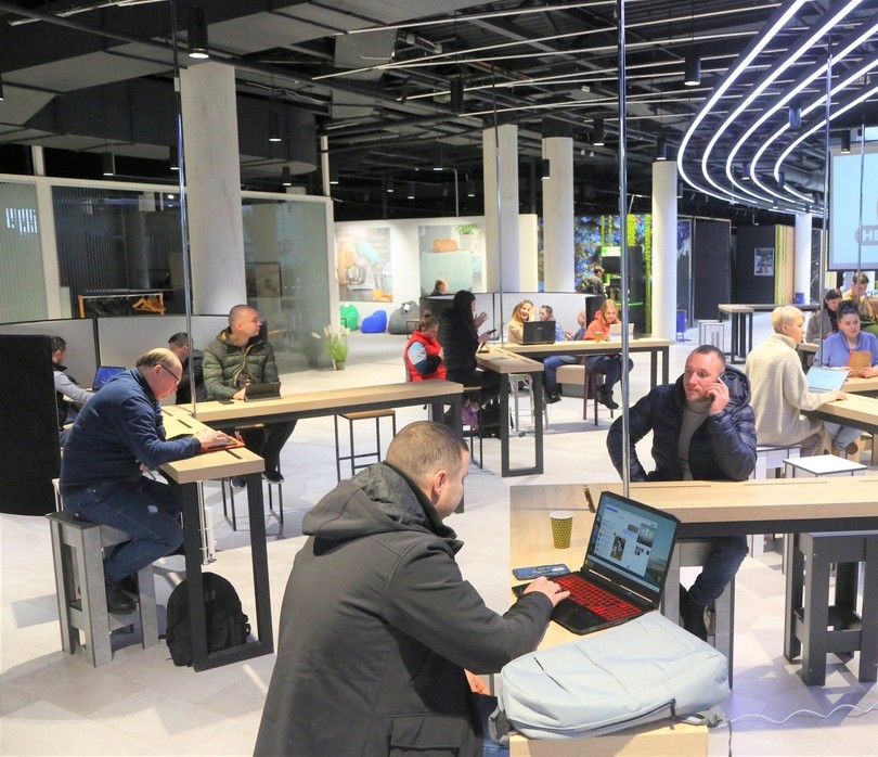 Через складну ситуацію в енергетичній системі України у торговельному центрі «Епіцентр» на Почайній відновив роботу безкоштовний коворкінг із зонами для роботи та відпочинку — Незламний хаб.