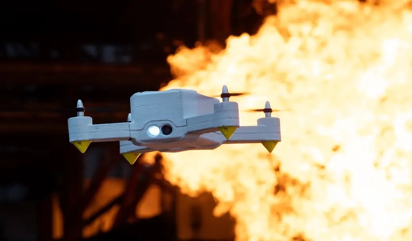 Обычные коммерческие дроны редко выдерживают больше 40 °C — при более высоких температурах деформируется корпус и отказывает электроника. FireDrone же рассчитан на полёт в условиях, где сочетаются токсичный дым, лучистое тепло и нестабильные конструкции.
