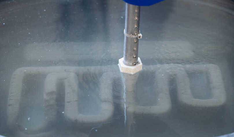 Команда Наир уже имела опыт работы с промышленным роботом весом около трех тонн, печатающим крупные бетонные конструкции. Оказалось, что при корректировке состава смеси и параметров печати технология действительно может работать и под водой — несмотря на постоянное воздействие воды.