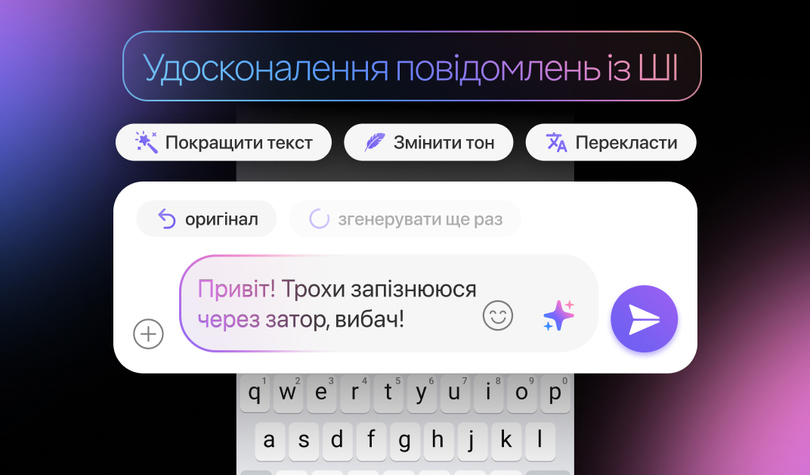 Viber оголосив про запуск функції для вдосконалення повідомлень. Функція на основі ШІ дозволяє коригувати та перекладати текст безпосередньо в полі введення перед відправкою повідомлення.